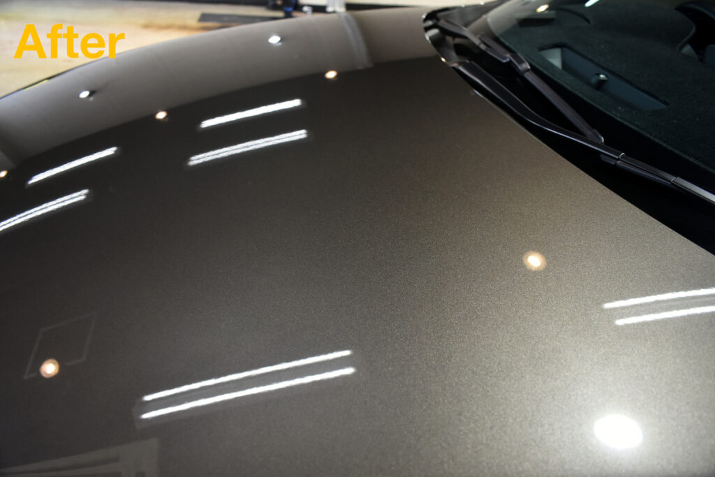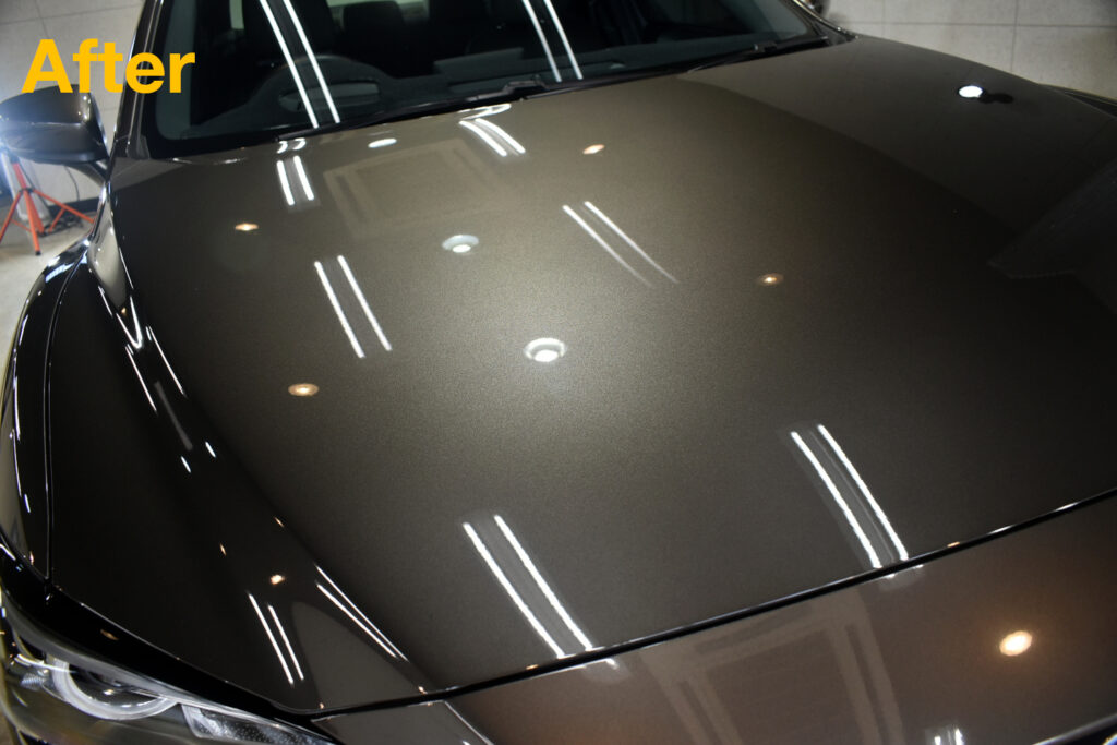 リボルトでは、ガラスコーティングの前に、高度な下地処理(Revolt Adjust System)を行います。この研磨方法を用いるとコンパウンドを絡まずに拭き取ることが可能で、見た目はもちろんのことですが、ガラスコーティング剤の定着を良くします。