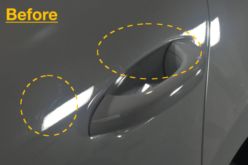リボルトでは、ガラスコーティングの前に、高度な下地処理(Revolt Adjust System)を行います。新車であっても最小限の研磨量で下地を整え、見た目はもちろんのことですが、ガラスコーティング剤の定着を良くします。