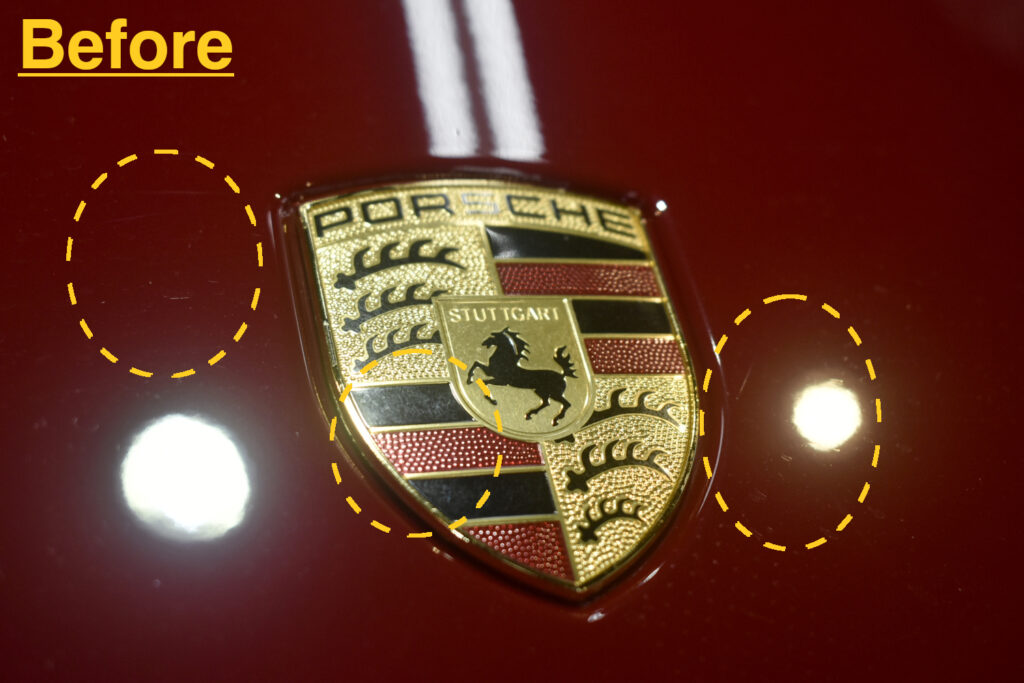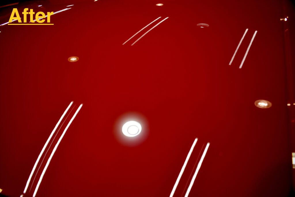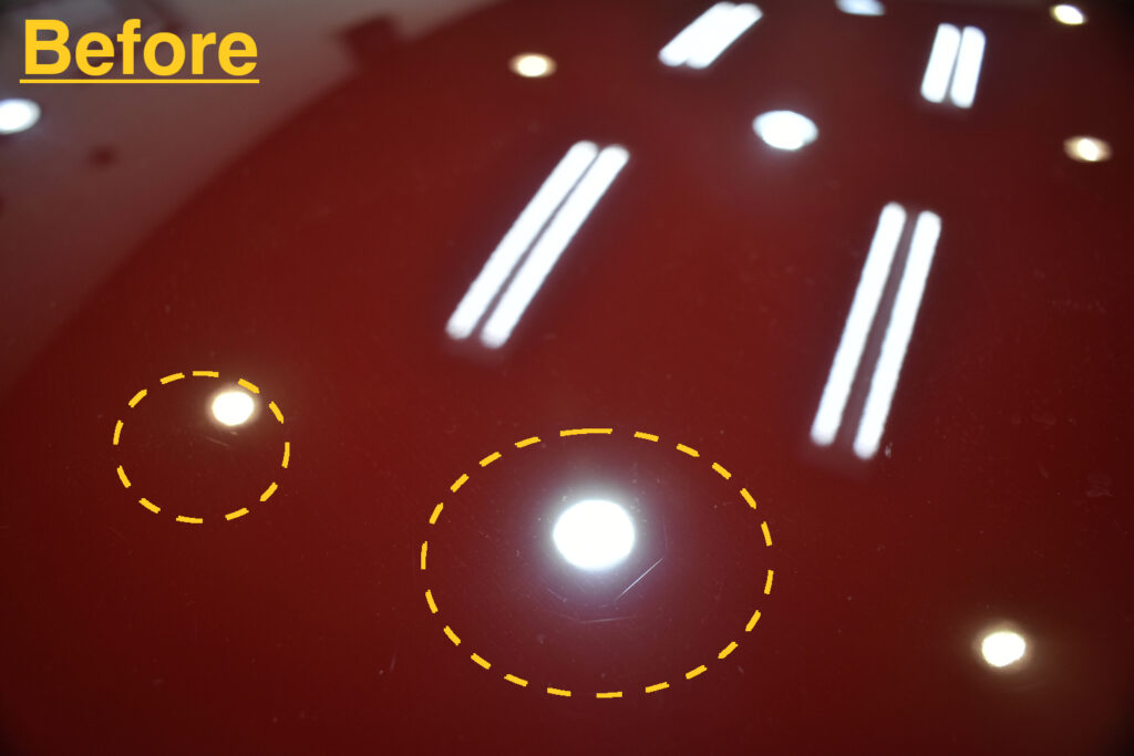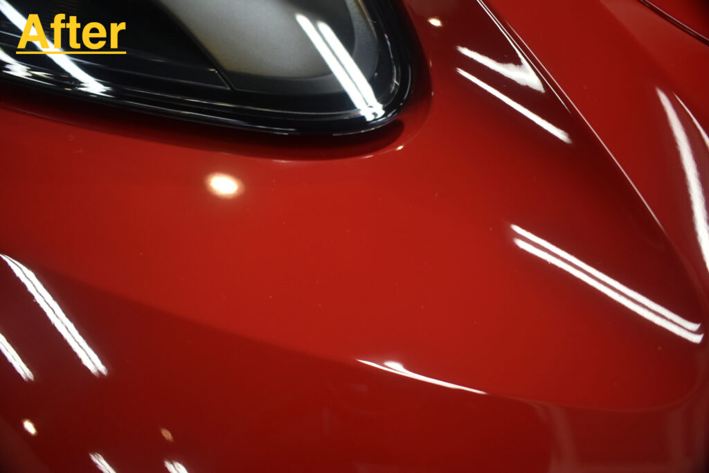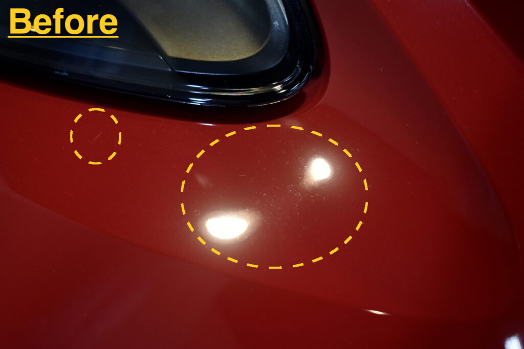 リボルトでは、コーティングの前に、高度な下地処理(Revolt Adjust System)を行います。コーティング車ですので経年よりも良い状態でしたが改めて、水染み、汚れ、キズをできる限り除去を行い見た目はもちろんのことですが、セラミックコーティング剤の定着を良くします。