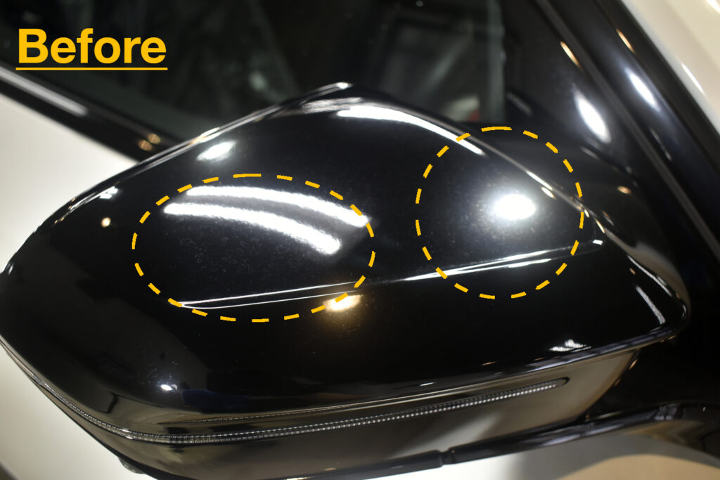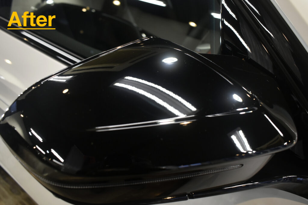 リボルトでは、コーティングの前に、高度な下地処理(Revolt Adjust System)を行います。コーティング車ですので経年よりも良い状態でしたが改めて、水染み、汚れ、キズをできる限り除去を行い見た目はもちろんのことですが、セラミックコーティング剤の定着を良くします。