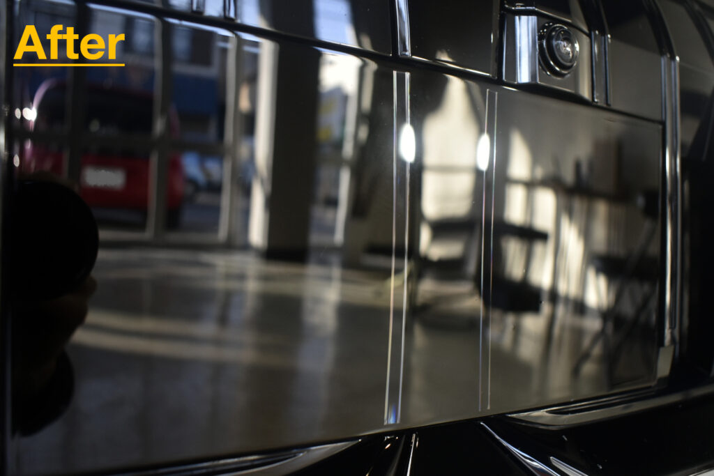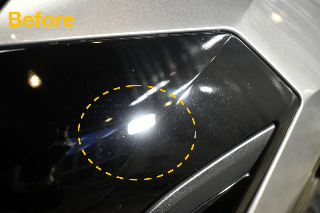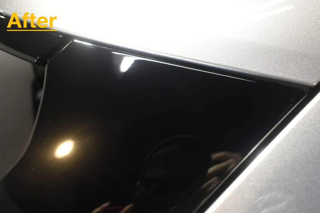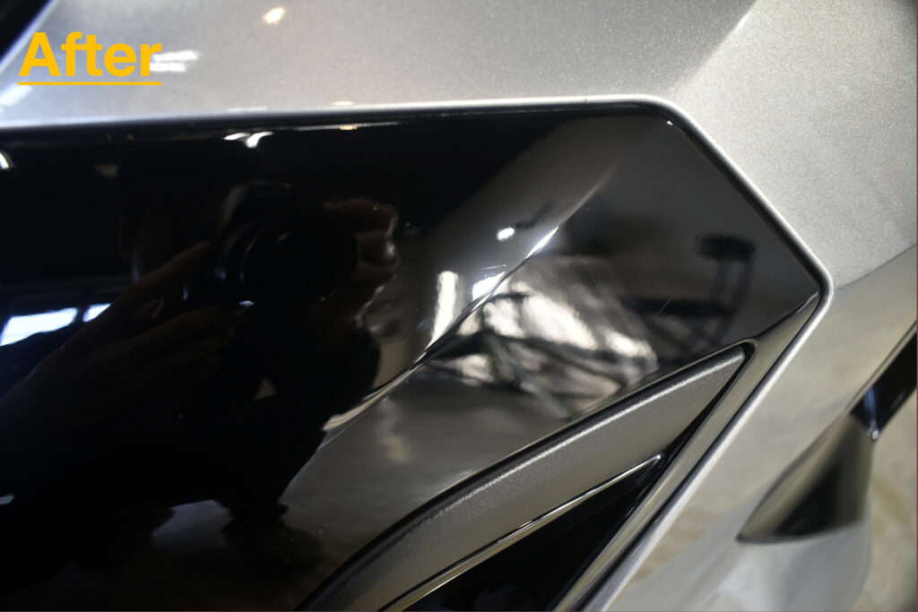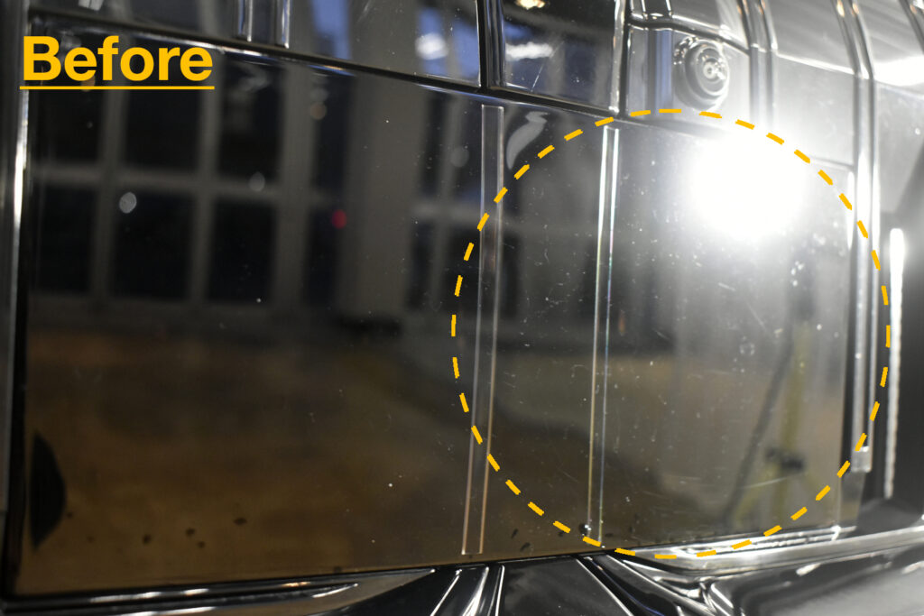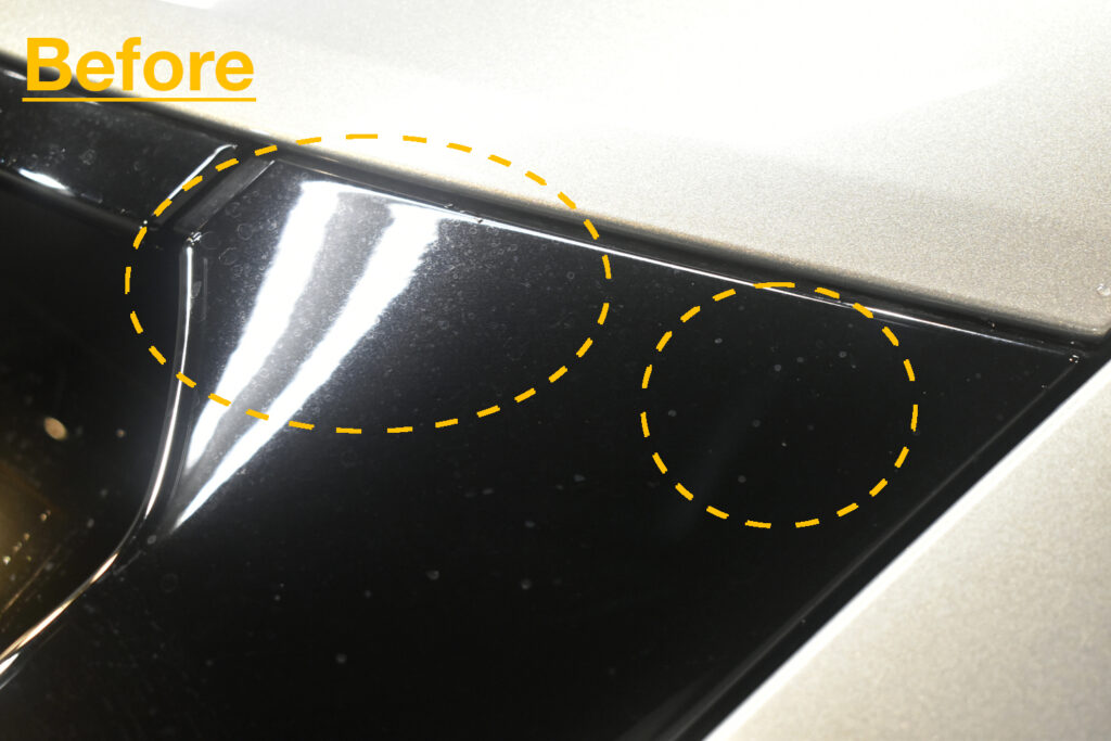 リボルトでは、コーティングの前に、高度な下地処理(Revolt Adjust System)を行います。コーティング車ですので経年よりも良い状態でしたが改めて、水染み、汚れ、キズをできる限り除去を行い見た目はもちろんのことですが、セラミックコーティング剤の定着を良くします。
