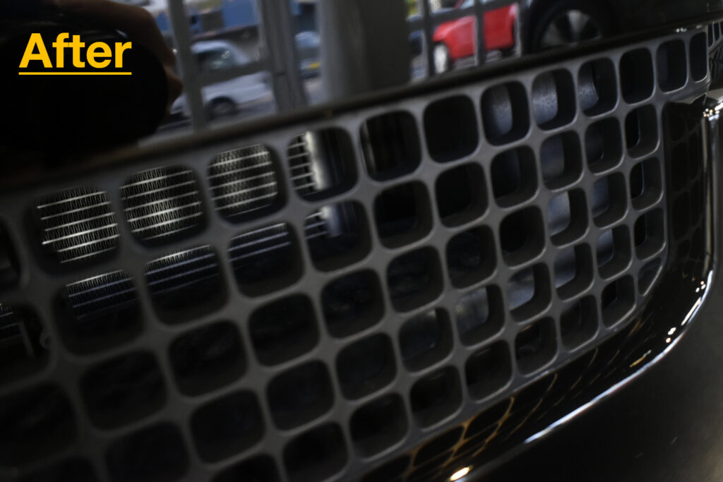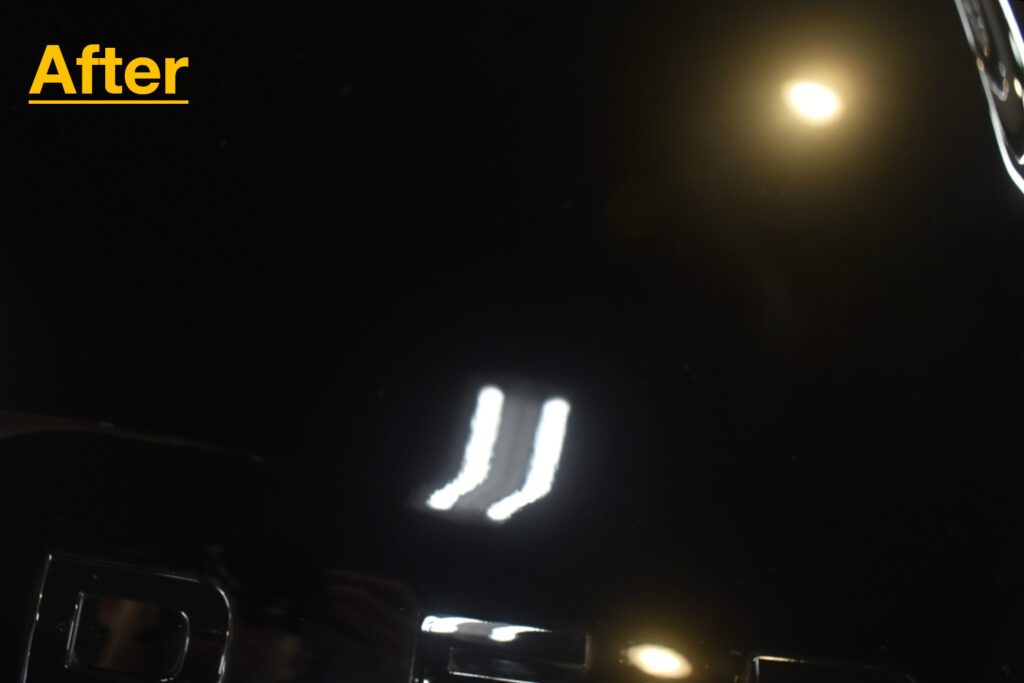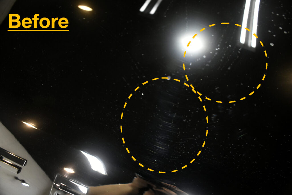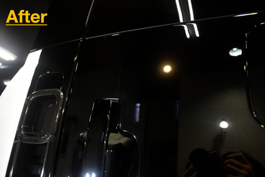 リボルトでは、コーティングの前に、高度な下地処理(Revolt Adjust System)を行います。コーティング車ですので経年よりも良い状態でしたが改めて、水染み、汚れ、キズをできる限り除去を行い見た目はもちろんのことですが、セラミックコーティング剤の定着を良くします。